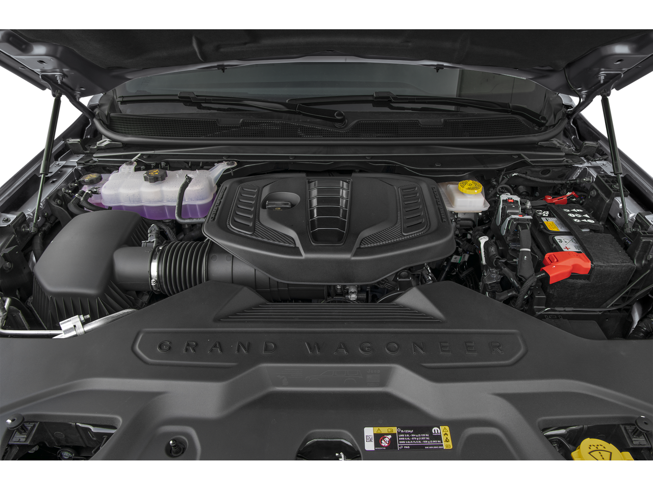 QUICK ORDER PACKAGE 29G 85TH ANNIVERSARY 3.0L I6 Hurricane SO Twin Turbo ESS Engine, 8-Speed Auto 880RE Transmission, Side Distance Warning, Surround View Camera System, Pirelli Brand Tires, Auto Power-Folding Mirrors, 85th Grand Wagoneer Decal w/Flag, Berber Front & Rear Floor Mats, 85th Liftgate Decal w/Flag, Titanium Upper Grille Applique, P&P Park & Unpark Assist w/Stop System, 4x4 Decal, Interior Rear Facing Camera, 3 Panel Sunroof, Titanium Daylight Opening Upper, Desert Bronze Tow Hooks, Berber Cargo Mat, 85th Anniversary Edition, 19 Speaker McIntosh Audio System, Auto-Power-Folding Exterior Mirrors, Interior Accent Stitching, 8-SPEED AUTO 880RE TRANSMISSION (STD), 3.0L I6 HURRICANE SO TWIN TURBO ESS ENGINE (STD). Jeep 85th Anniversary with Bright White Clearcoat exterior and Global Black interior features a Straight 6 Cylinder Engine with 420 HP at 5200 RPM*.