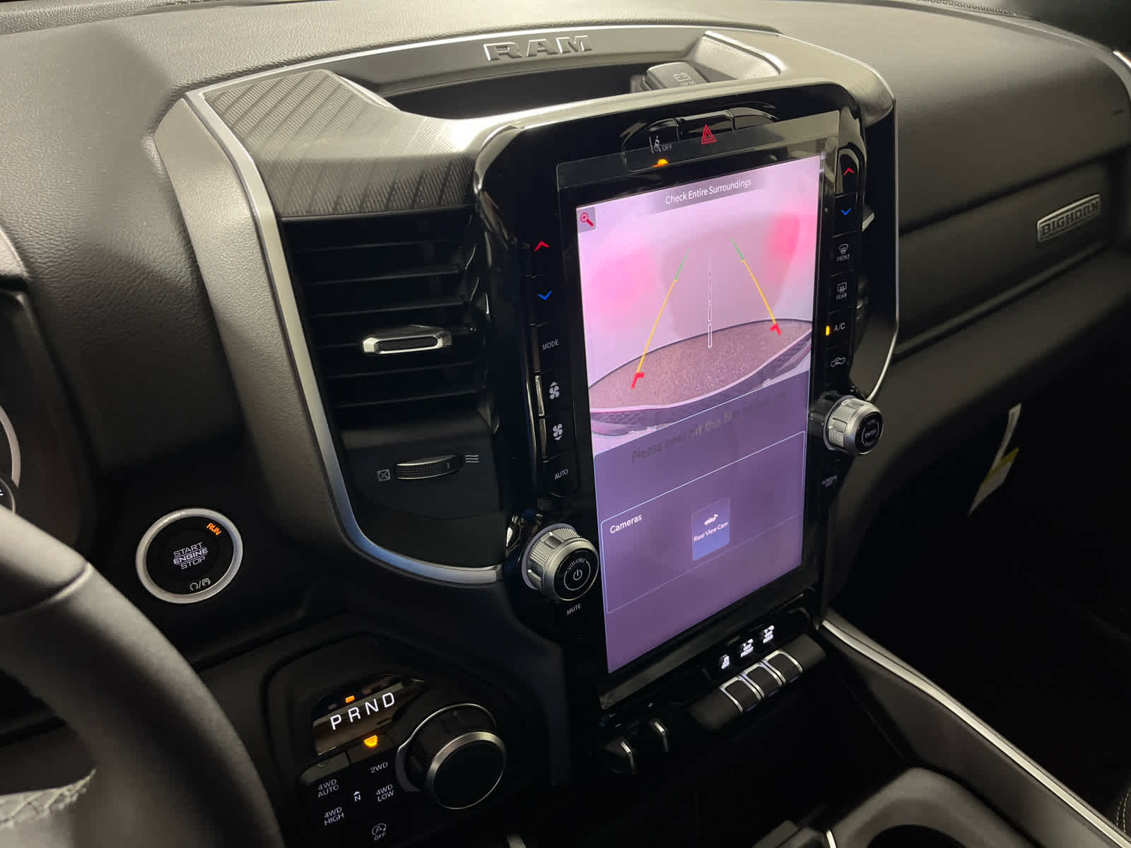 SiriusXM Radio Service, Power Adjustable Pedals, Leather Wrapped Steering Wheel, 12 Touchscreen Display, Glove Box Lamp, Auto Power-Folding Mirrors, 115V Auxiliary Rear Power Outlet, Media Hub w/2 Charge Only USBs, Heated Front Seats, Security Alarm, Black Premium Power Mirrors, Premium Overhead Console, 9 Amplified Speakers w/Subwoofer, Disassociated Touchscreen Display, Body Color Fender Flares, Remote Tailgate Release, 115V Auxiliary Power Outlet, LED Dome Lamp w/On/Off Switch, Universal Garage Door Opener, 2nd Row In Floor Storage Bins, Sun Visors w/Illuminated Vanity Mirrors, LED Footwell Lighting, Rear Window Defroster, Rear View Auto Dim Mirror, Rear Power Sliding Window, GPS Navigation, Overhead LED Lamps, Wheels: 20 x 9 Aluminum Chrome Clad (WRK), Tires: 275/55R20 OWL All, Tires: 275/55R20 OWL All Season, Bridgestone Brand Tires, Accent Color Premium Power Mirrors, Exterior Mirrors w/Supplemental Signals, Black Headlamp Bezels, Exterior Mirrors Courtesy Lamps, Grille Black Surround Black Mesh, Auto Power-Folding Mirrors, Wheels: 20 x 9.0 Aluminum Painted Clad, Auto Dim Exterior Driver Mirror, Black Exterior Truck Badging, Anti-Spin Differential Rear Axle, Accent Color Door Handles, Accent Color Tailgate Handle, Black Interior Accents, Dual Exhaust w/Black Tips, Body Color Front Bumper, Body Color Rear Bumper w/Step Pads, Black Tail Lamp Bezels, RAM Grille Badge - Black, Black Painted Exterior Mirrors Caps, MOPAR FRONT & REAR RUBBER FLOOR MATS, (STD).