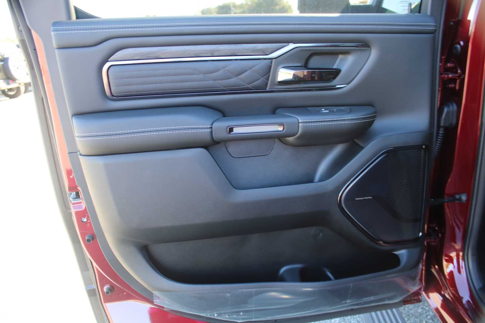 LIMITED LEVEL A EQUIPMENT GROUP Surround View Camera System, LED CHMSL Lamp, Tri-Fold Tonneau Cover, Traffic Sign Recognition, RamBox Cargo Management System, Hands-Free Active Driving Assist System, Head Up Display, Evasive Steer Assist, Drowsy Driver Detection, Exterior 115V AC Outlet, Intersection Collision Assist System, Smartphone As A Key Capable, 14.4 Touchscreen Display, Radio: Uconnect 5 Nav w/14.4 Display, 240 Amp Alternator, 12-Way/1-Way Trailer Connector, NIGHT EDITION Tires: 285/45R22XL BSW All Season, Black Headlamp Bezels, Wheels: 22 x 9 Premium Black Aluminum, Pirelli Brand Tires, Accent Color Door Handles, Body Color Front Bumper, Body Color Rear Bumper w/Step Pads, RAM Grille Badge - Black, Black Painted Exterior Mirrors Caps, Accent Color Premium Power Mirrors, Sport Performance Hood, Black Exterior Truck Badging, Black Day Light Opening Moldings, Accent Color Tailgate Handle, Dual Exhaust w/Black Tips, Black Grille Surround Texture 7 Black, Black Tail Lamp Bezels, DUAL-PANE PANORAMIC SUNROOF LED Dome/Reading Lamp, Dome Dual LED Reading Lamp, MULTI-FUNCTION TAILGATE Remote Tailgate Release, RAMs Head Badge, TRANSMISSION: 8-SPEED AUTOMATIC (8HP75) (STD), ENGINE: 3.0L I6 HURRICANE HO TWIN TURBO ESS (STD). Ram Limited with Delmonico Red Pearlcoat exterior and Black interior features a Straight 6 Cylinder Engine.
