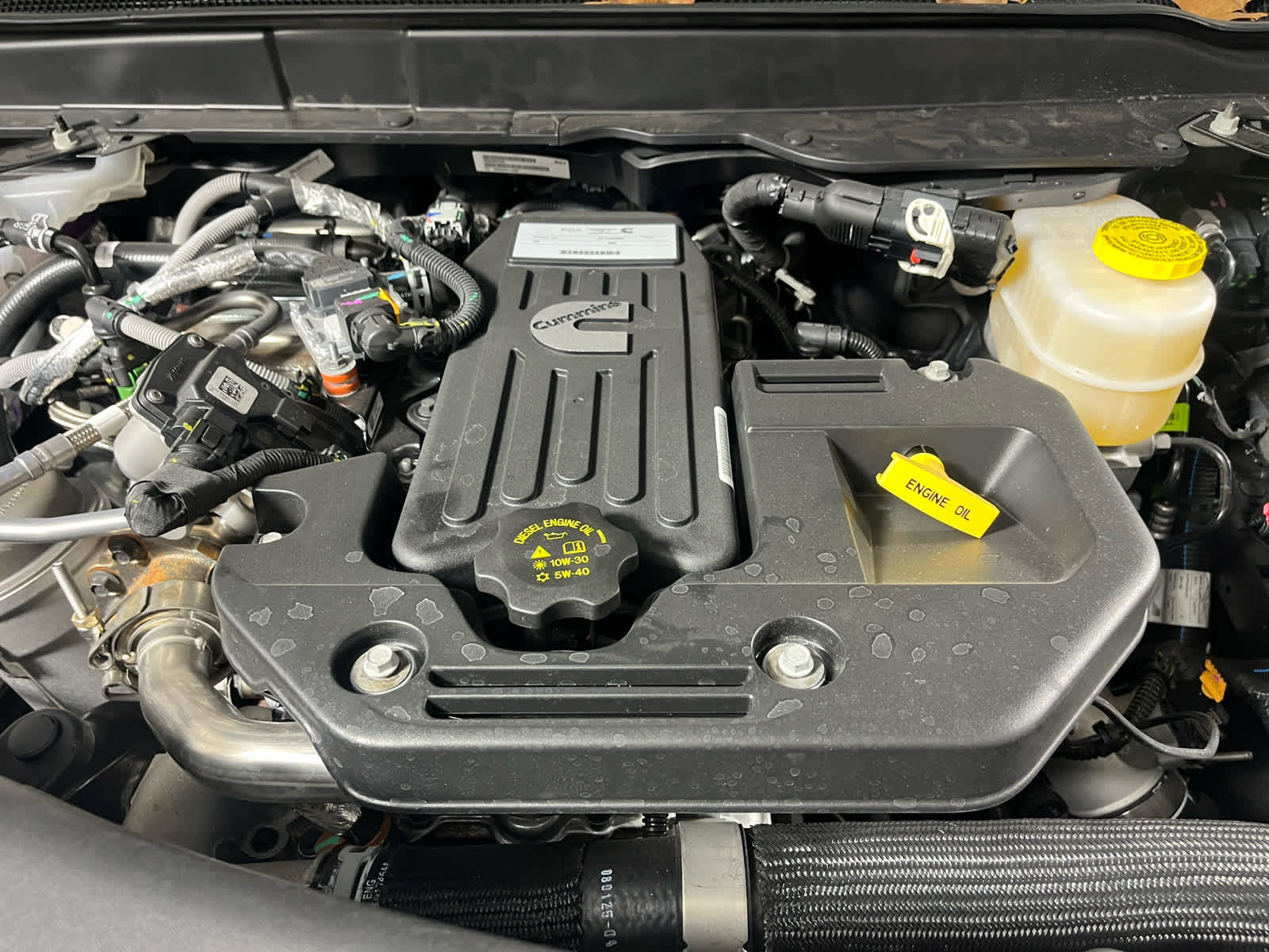 ENGINE: 6.7L I6 CUMMINS HO TURBO DIESEL Selective Catalytic Reduction (Urea), Dual 730 Amp Maintenance Free Batteries, Cummins Turbo Diesel Badge, Heavy Duty Engine Cooling, Current Generation Engine Controller, Diesel Exhaust Brake, Supplemental Heater, 3.42 Axle Ratio, Front Bumper Sight Shields, Capless Fuel Fill w/o Discriminator, LARAMIE LEVEL 1 PLUS EQUIPMENT GROUP CTR Stop Lamp w/Cargo View Camera, Rain Sensitive Windshield Wipers, Power Adjustable Pedals w/Memory, LED Bed Lighting, Traffic Sign Recognition, Adaptive Steering System, Auto Dimming Exterior Mirrors, Drowsy Driver Detection, MOPAR Deployable Bed Step, Foam Bottle Insert (Door Trim Panel), Active Lane Management System, Power Heat Fold Memory Telescopic Mirrors, MOPAR Spray In Bedliner, Remote Tailgate Release, Auto High Beam Headlamp Control, Exterior Mirrors w/Memory, 2nd Row In Floor Storage Bins, Auto Dimming Exterior Passenger Mirror, Auto Adjust In Reverse Exterior Mirrors, DUAL REAR WHEELS Clearance Lamps, Tires: LT235/80R17E BSW All Season, 17 Steel Spare Wheel, Box & Rear Fender Clearance Lamps, Center Hub, 6000# Front Axle w/Hub Ext, Wheels: 17 x 6.0 Polished Aluminum, Nexen Brand Tires, GVWR: 14,000 lb, CHROME FLAT CAB-LENGTH SIDE STEPS, MOPAR FRONT & REAR RUBBER FLOOR MATS, TRANSMISSION: 8-SPEED TORQUEFLITE HD AUTOMATIC, BLACK, LEATHER TRIMMED BUCKET SEATS Bucket Seats, Dual Wireless Charging Pad, Full Length Upgraded Floor Console.