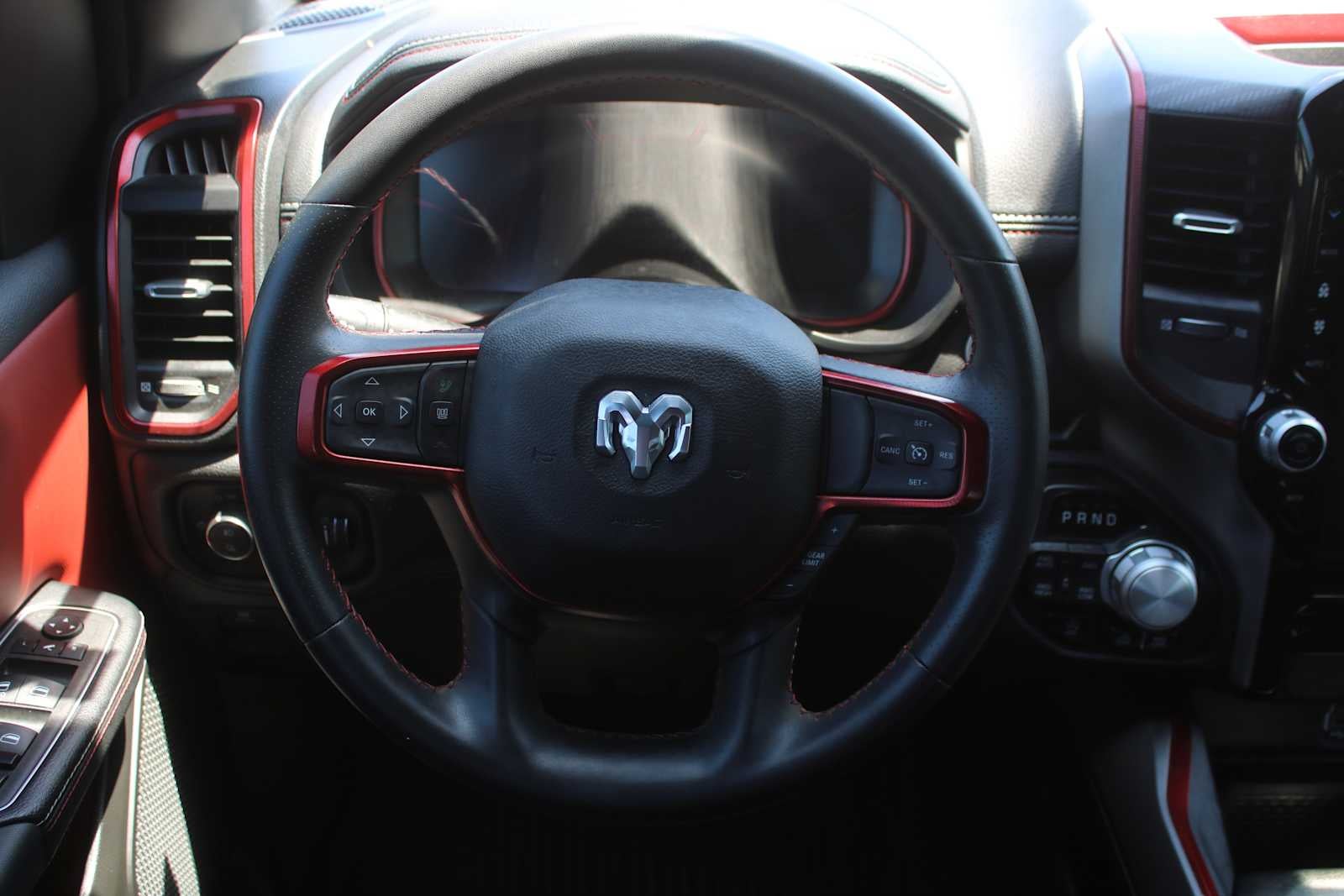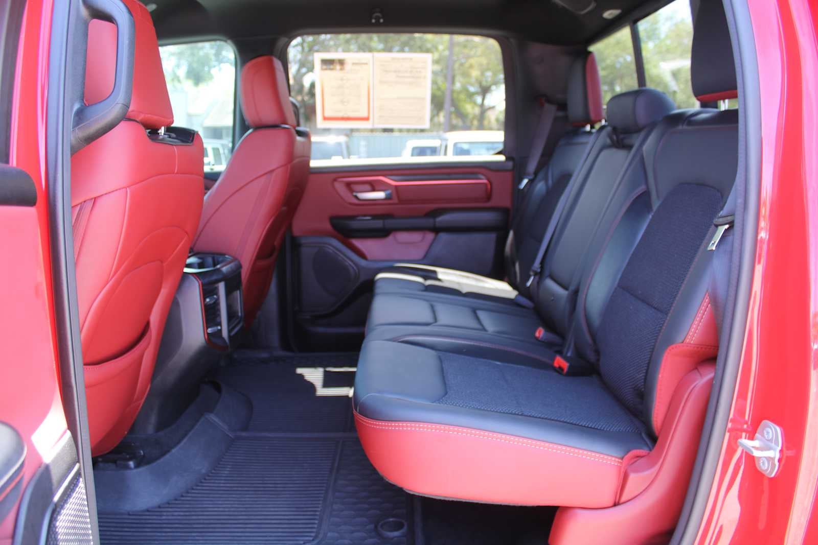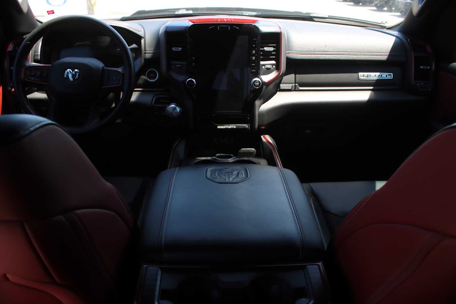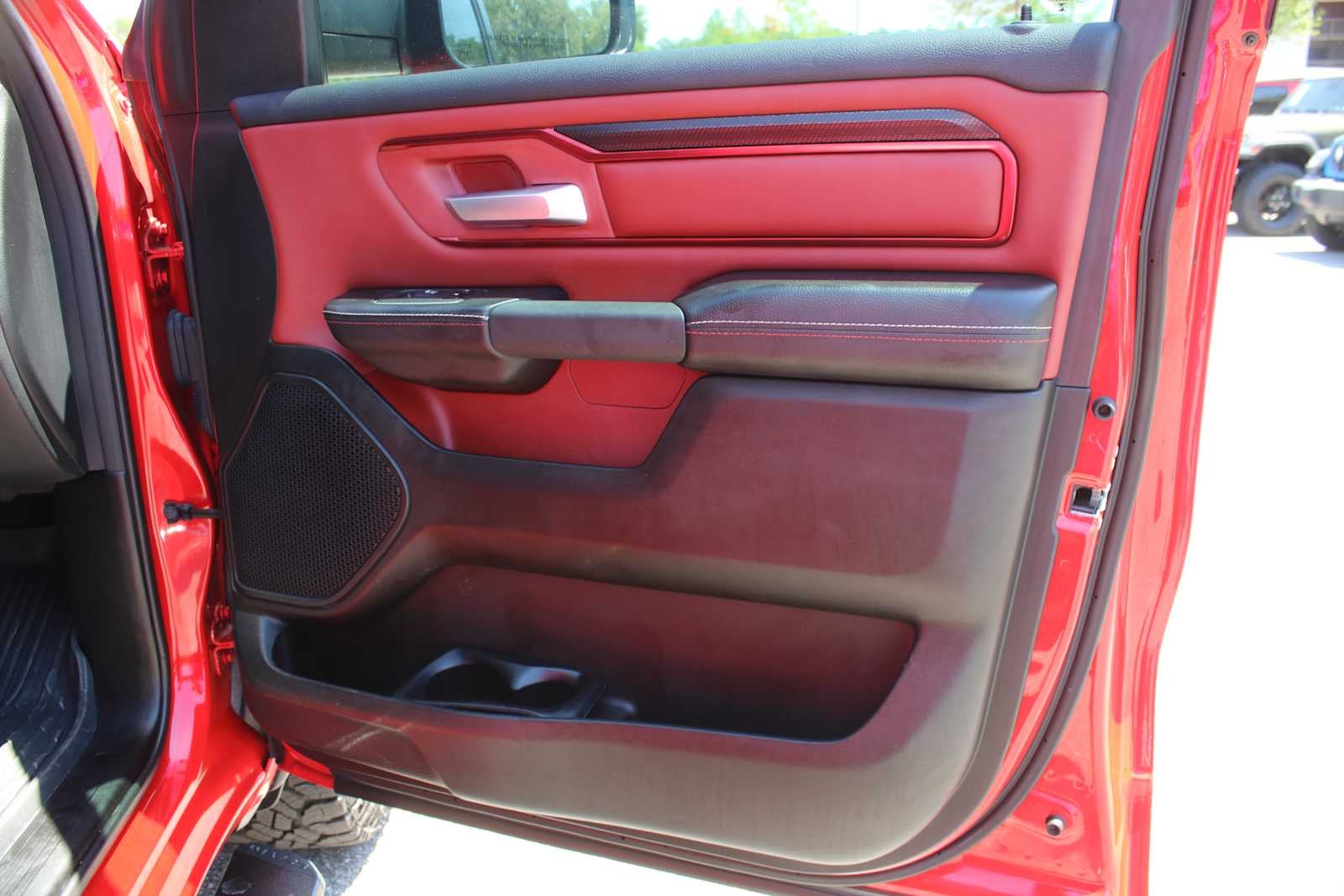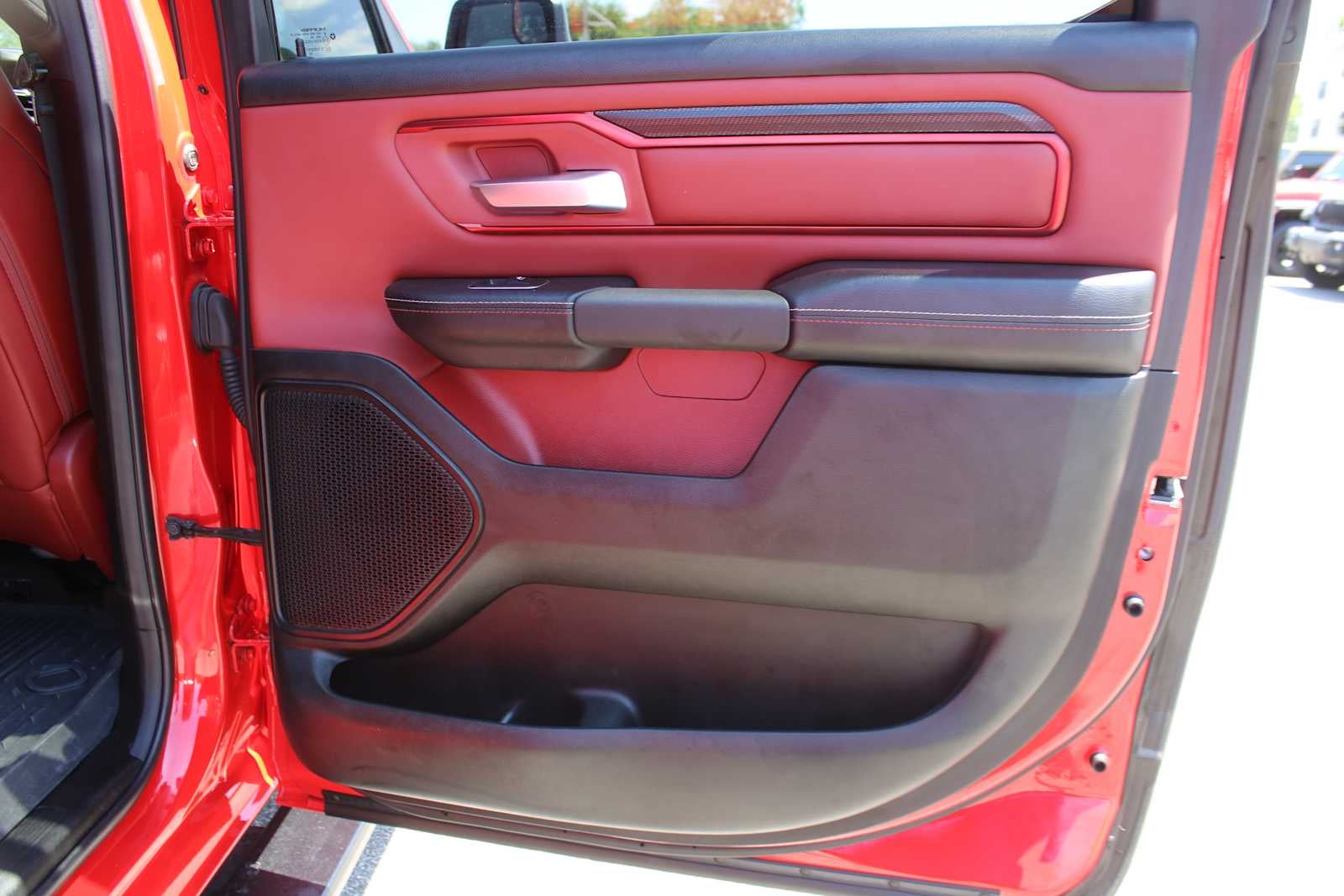 ENGINE: 5.7L V8 HEMI MDS VVT ETORQUE Active Noise Control System, Heavy Duty Engine Cooling, Passive Tuned Mass Damper, Dual Exhaust w/Black Tips, GVWR: 7,100 lbs, HEMI Badge, 23 Gallon Fuel Tank, REBEL LEVEL 1 EQUIPMENT GROUP Rear Window Defroster, Power Adjustable Pedals, Rear Power Sliding Window, Rear Dome w/On/Off Switch Lamp, Power 8-Way Driver Seat, Auto Dim Exterior Driver Mirror, Heated Front Seats, Foam Bottle Insert (Door Trim Panel), Black Premium Power Mirrors, 9 Amplified Speakers w/Subwoofer, Radio: Uconnect 5 Nav w/12.0 Display, Exterior Mirrors w/Supplemental Signals, Exterior Mirrors Courtesy Lamps, Universal Garage Door Opener, Power-Folding Mirrors, 2nd Row In Floor Storage Bins, Sun Visors w/Illuminated Vanity Mirrors, Power 2-Way Driver Lumbar Adjust, CLASS IV RECEIVER HITCH, TRANSMISSION: 8-SPEED AUTOMATIC (8HP75). Ram Rebel with Flame Red Clearcoat exterior and Red/Black interior features a 8 Cylinder Engine with 395 HP at 5600 RPM*. Serviced here, Non-Smoker vehicle, Originally bought here