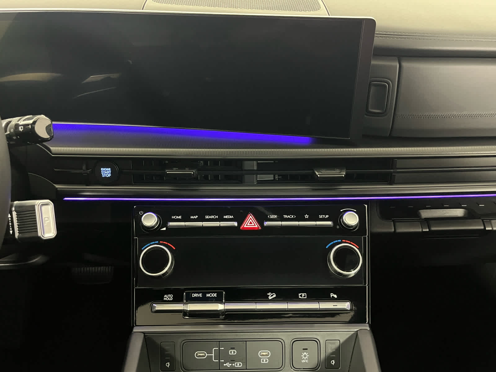- Radio: AM/FM/HD Bose Premium Audio System -inc: 12 speakers including subwoofer, external amplifier, 12.3" wide touchscreen, Apple CarPlay and Android Auto, Bluetooth® hands-free w/wireless audio streaming, dynamic voice recognition, USB connectivity, SiriusXM, wifi hotspot, Blue Link connected car system, navigation system including traffic flow w/incident data via HD Radio (HERE), OTA updates (map only) and rear seat quiet mode