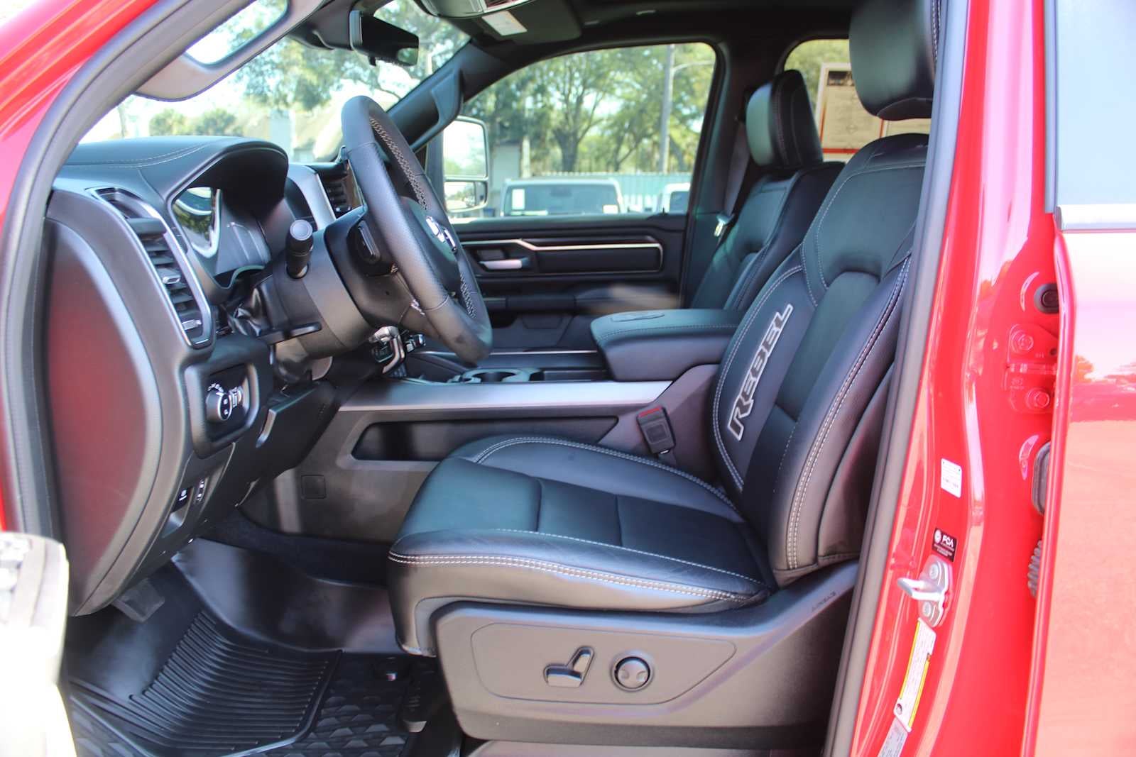 REBEL LEVEL 2 EQUIPMENT GROUP Rear Window Defroster, Rain Sensitive Windshield Wipers, Power Adjustable Pedals w/Memory, Front Passenger Interactive Display, Auto Power-Folding Mirrors, 115V Auxiliary Rear Power Outlet, Media Hub w/2 Charge Only USBs, Proximity Approach/Departure Lamps, Auto Dim Exterior Driver Mirror, Accent Color Door Handles, Heated Second Row Seats, Power Adjust 8-Way Front Passenger Seat, Security Alarm, Black Painted Exterior Mirrors Caps, Off-Road Information Pages, Exterior Mirrors Approach Lamps, HD Radio, Smartphone As A Key Capable, Accent Color Premium Power Mirrors, Dual Wireless Charging Pad, Exterior Mirrors w/Supplemental Signals, Exterior Mirrors Courtesy Lamps, Radio: Uconnect 5 Nav w/14.4 Display, harman/kardon® 19 Speaker Premium Sound, 2-Door Passive, 4-CORNER AIR SUSPENSION, DUAL-PANE PANORAMIC SUNROOF Dome Dual LED Reading Lamp, BLACK, LUX LEATHER TRIMMED BUCKET SEATS Power 2-Way Passenger Lumbar Adjust, Ventilated Front Seats, Heated Front Seats, Heated Steering Wheel, Power Adjust 8-Way Front Passenger Seat, Power 2-Way Driver Lumbar Adjust, TECHNOLOGY GROUP Head Up Display, LED CHMSL Lamp, 12-Way/1-Way Trailer Connector, MOPAR BLACK TUBULAR SIDE STEPS, TRANSMISSION: 8-SPEED AUTOMATIC (8HP75) (STD), ENGINE: 3.0L I6 HURRICANE SO TWIN TURBO ESS (STD). Ram Rebel with Flame Red Clearcoat exterior and Black interior features a Straight 6 Cylinder Engine with 420 HP at 5200 RPM*. Serviced here, Non-Smoker vehicle